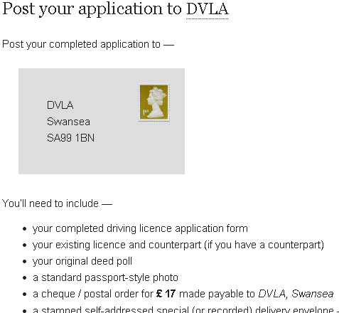 - what fee you need to send to DVLA, if any (renewing your licence is usually free though)